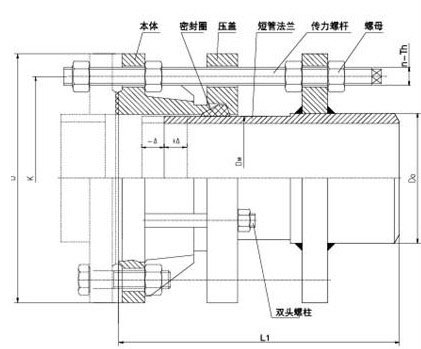2.该产品采用金属铸造或焊接组成,松套部位选用梯形橡胶密封圈,在压盖和螺栓的作用下。